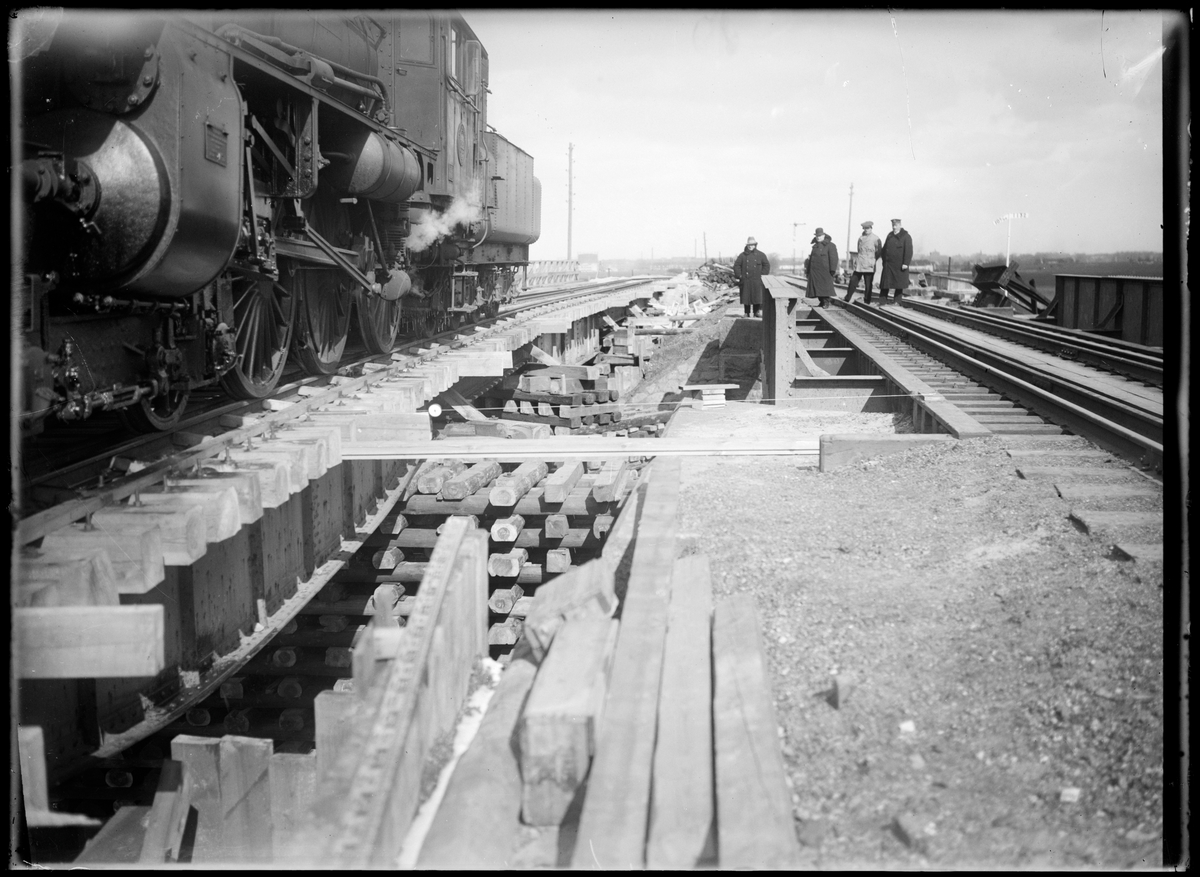 Titel: Provbelastning av provisorisk viadukt under ombyggnation av viadukten över Malmö Ystads Järnväg, på sträckan mellan Malmö och Trelleborg.