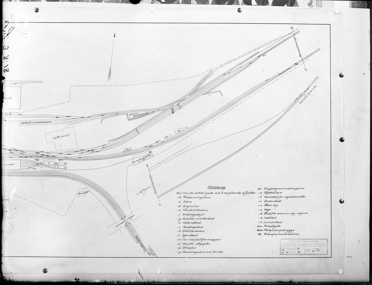 Titel: Ritning inför bangårdsombyggnad vid Malmö godsbangård.