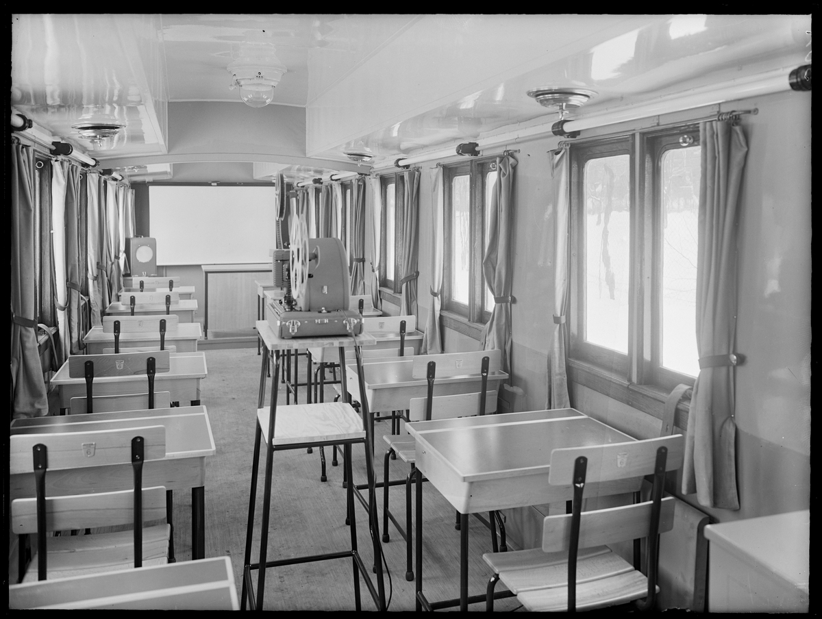 Stockholm - Roslagens Järnvägar, interiör av undervisningsvagn SRJ Bop 30.