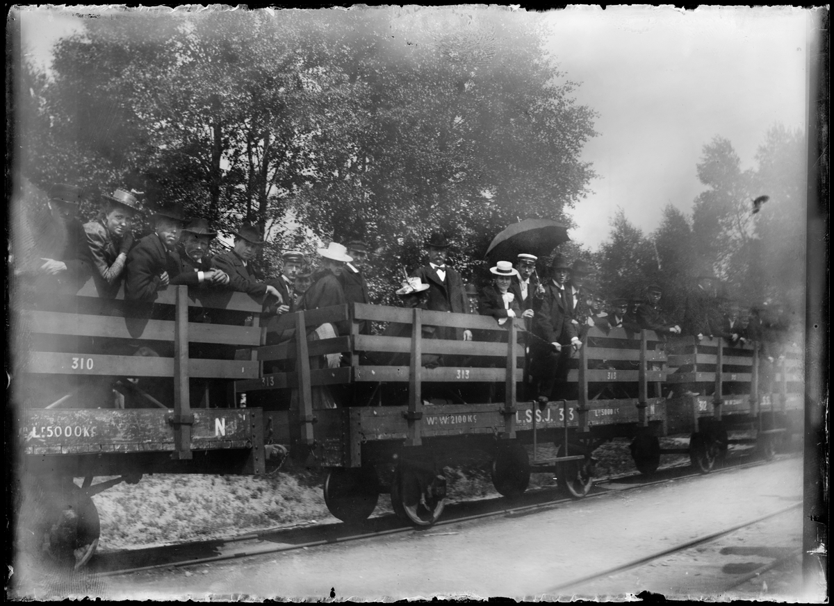 Titel: Persontransport på godsvagnar tillhörandes Lidköping - Skara - Stenstorps Järnväg. LSSJ godsvagn 33.