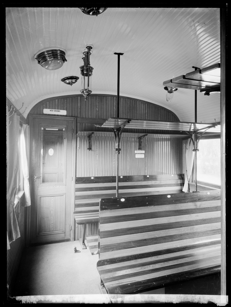 Titel: Interiörbild av 3:e klassavdelningen i personvagn byggd för Kalmar Järnvägar. KJ Bco 6.