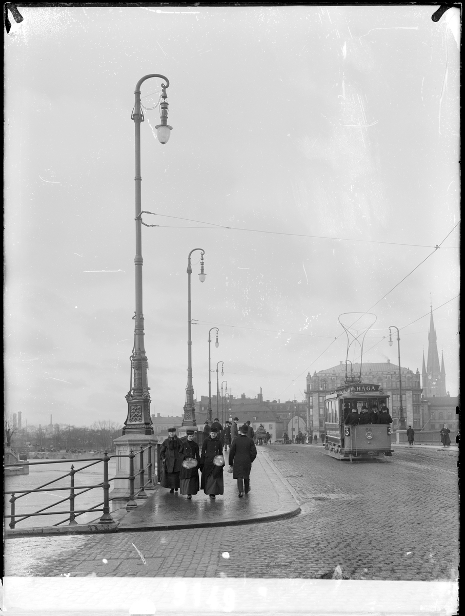 Spårvagn på väg över Vasabron, här sedd i riktning mot Tegelbacken.