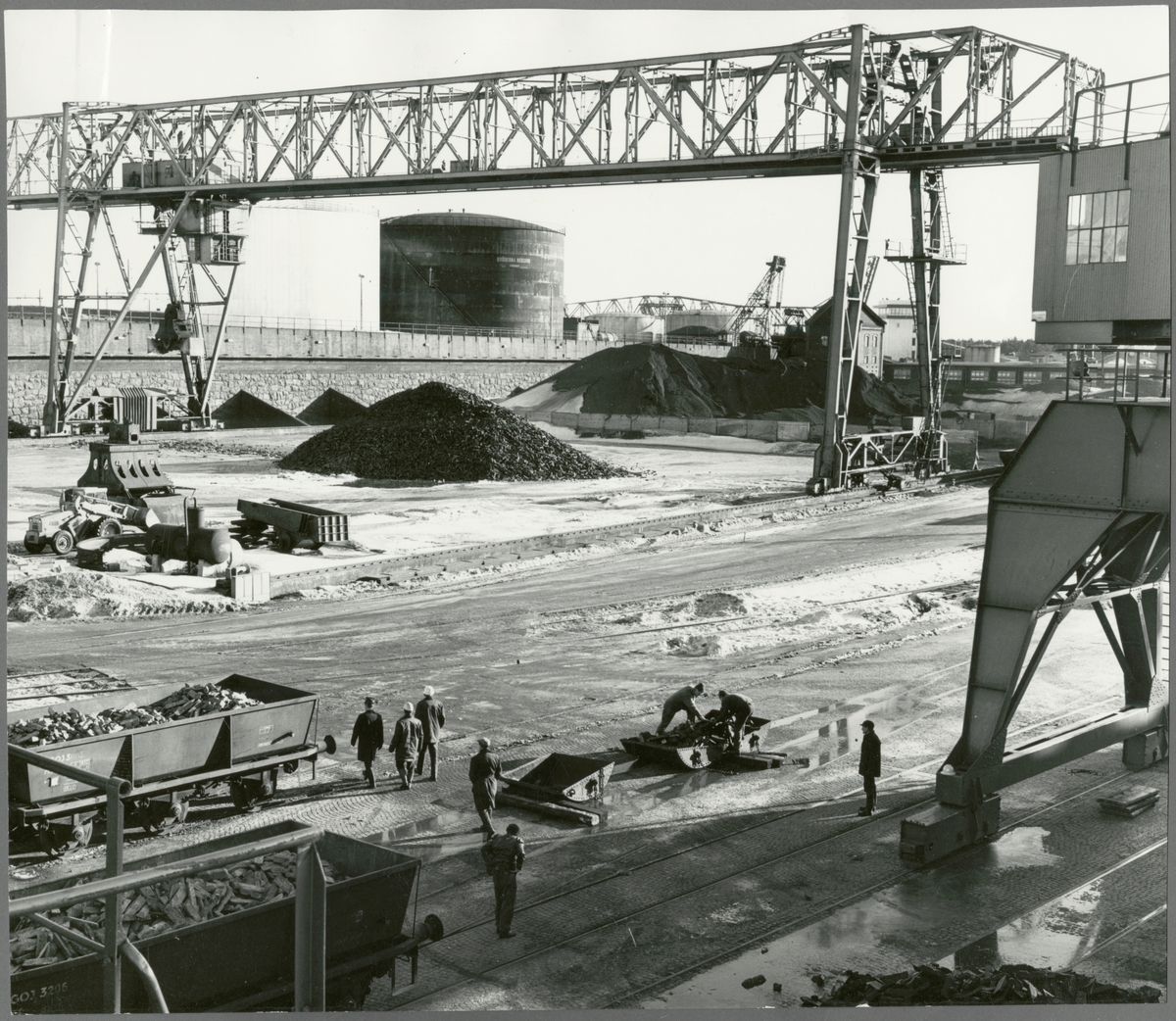 Hantering av tackjärn för export till Japan, vid hamnen i Oxelösund.