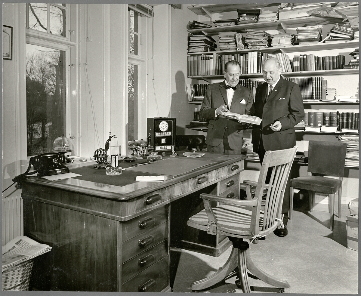 Lennart Tolin och Överinspektör Bo Ytterberg vid det då planerade TGOJ-museet i Skogstorps stationshus.