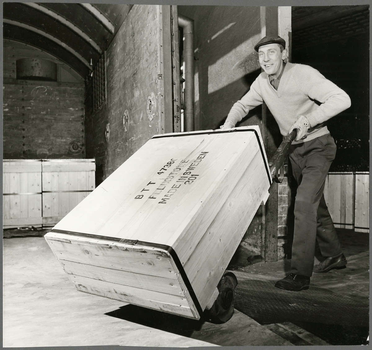 Folke Lundin lastar en godsvagn vid AB Järnförädling.