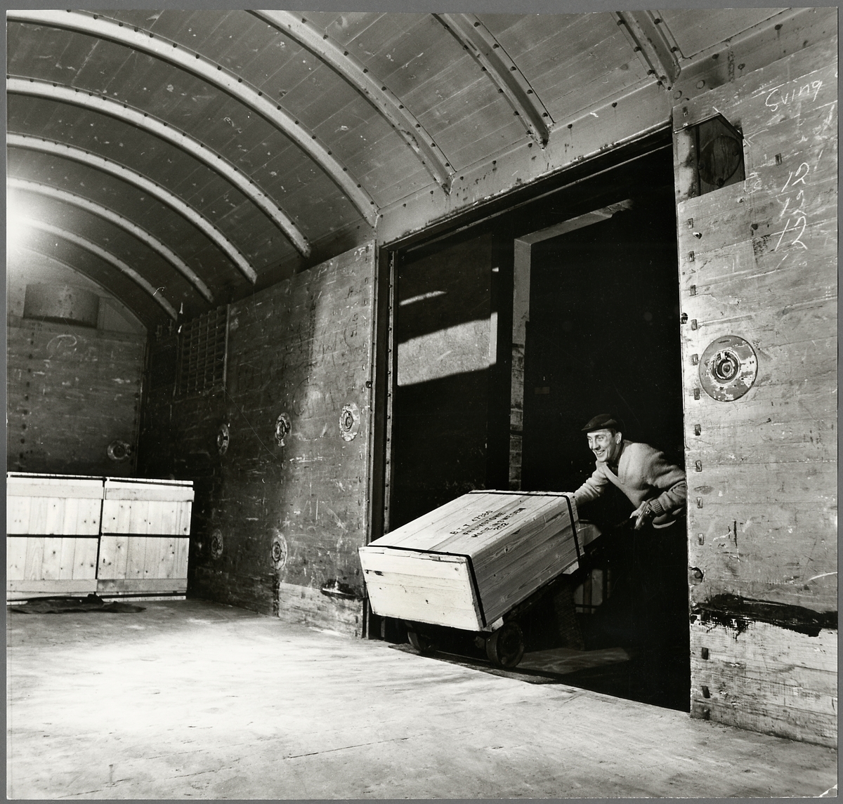 Folke Lundin lastar en godsvagn vid AB Järnförädling.