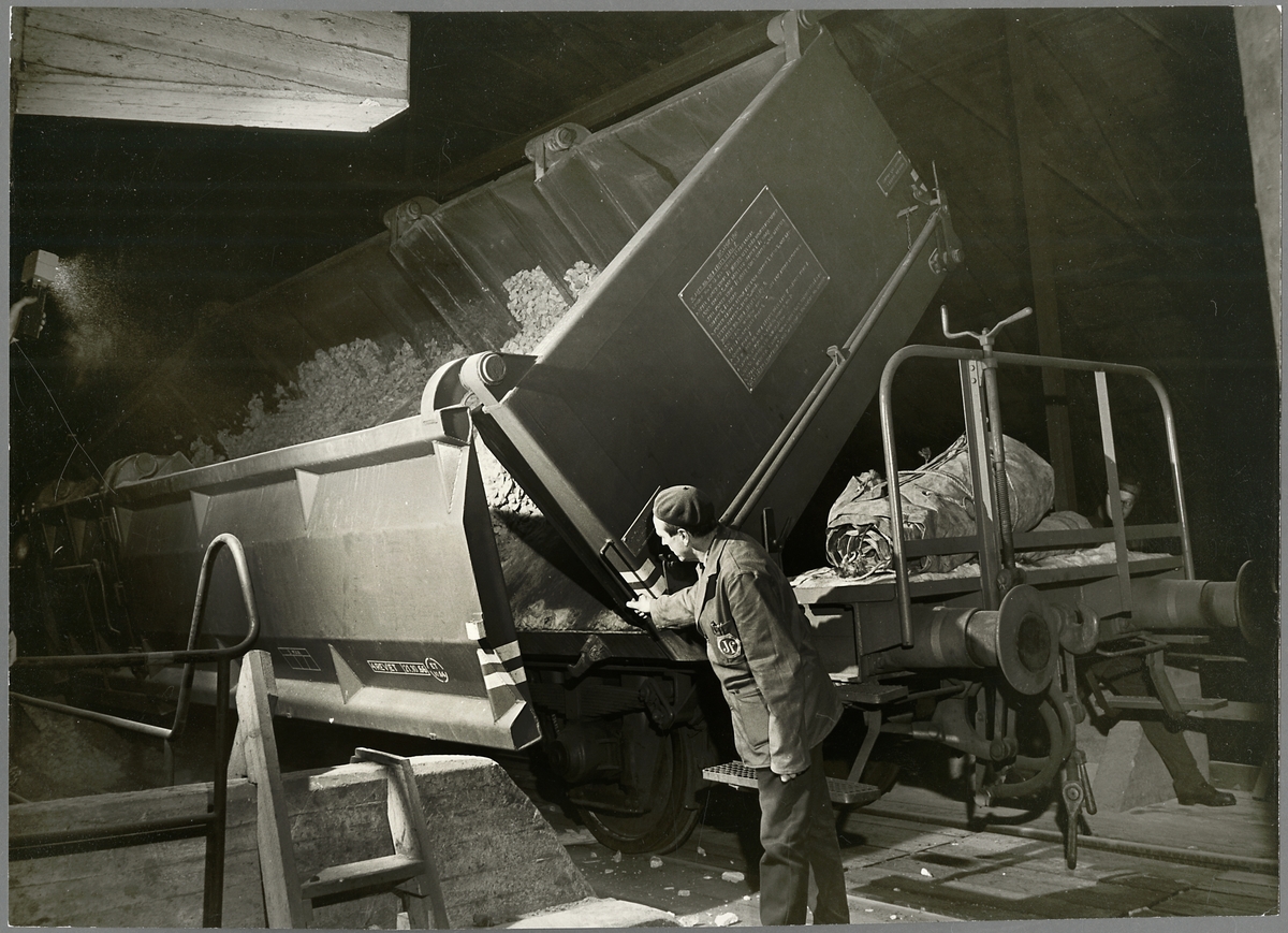 Titel: Trafikaktiebolaget GrängesbergOxelösunds Järnvägar, TGOJ Q-tipp vagn vid AB Järnförädling.