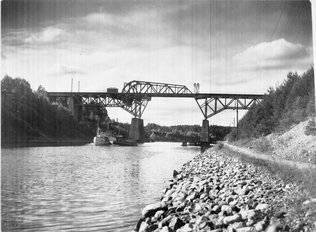Ångfartyget Ejdern, med hemmahamn i Södertälje, har just passerat under klaffbron.