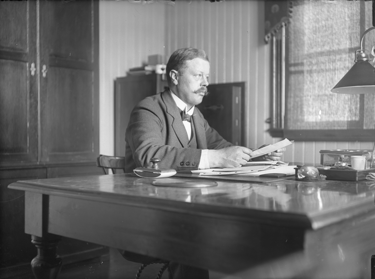 Titel: Godsexpedition Förste stationsskrivare G Johansson i sitt tjänsterum