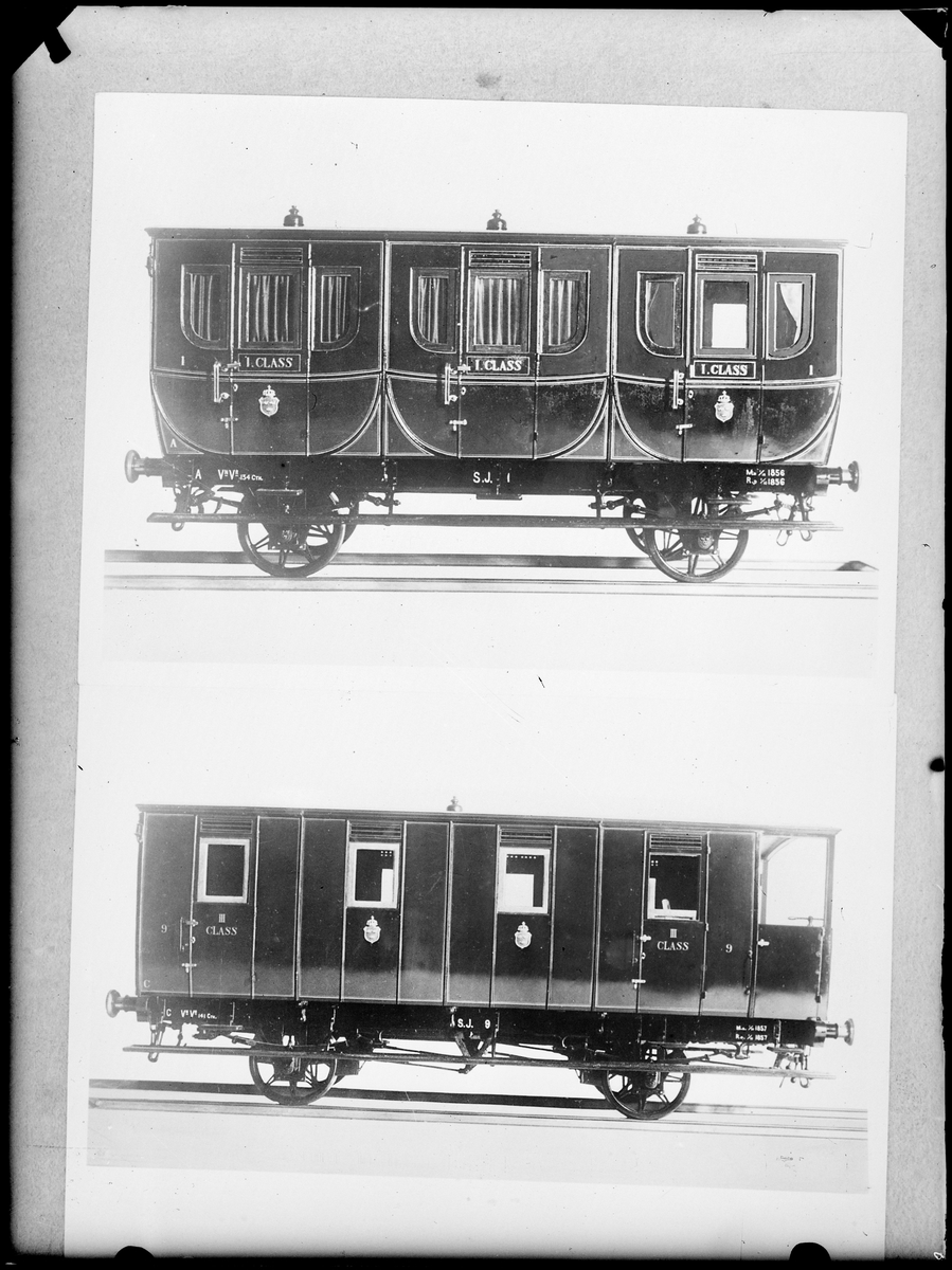 Järnvägsmodeller personvagnar. Statens Järnvägar, SJ A 1 (klass I) och Sj C 9 (Klass III).