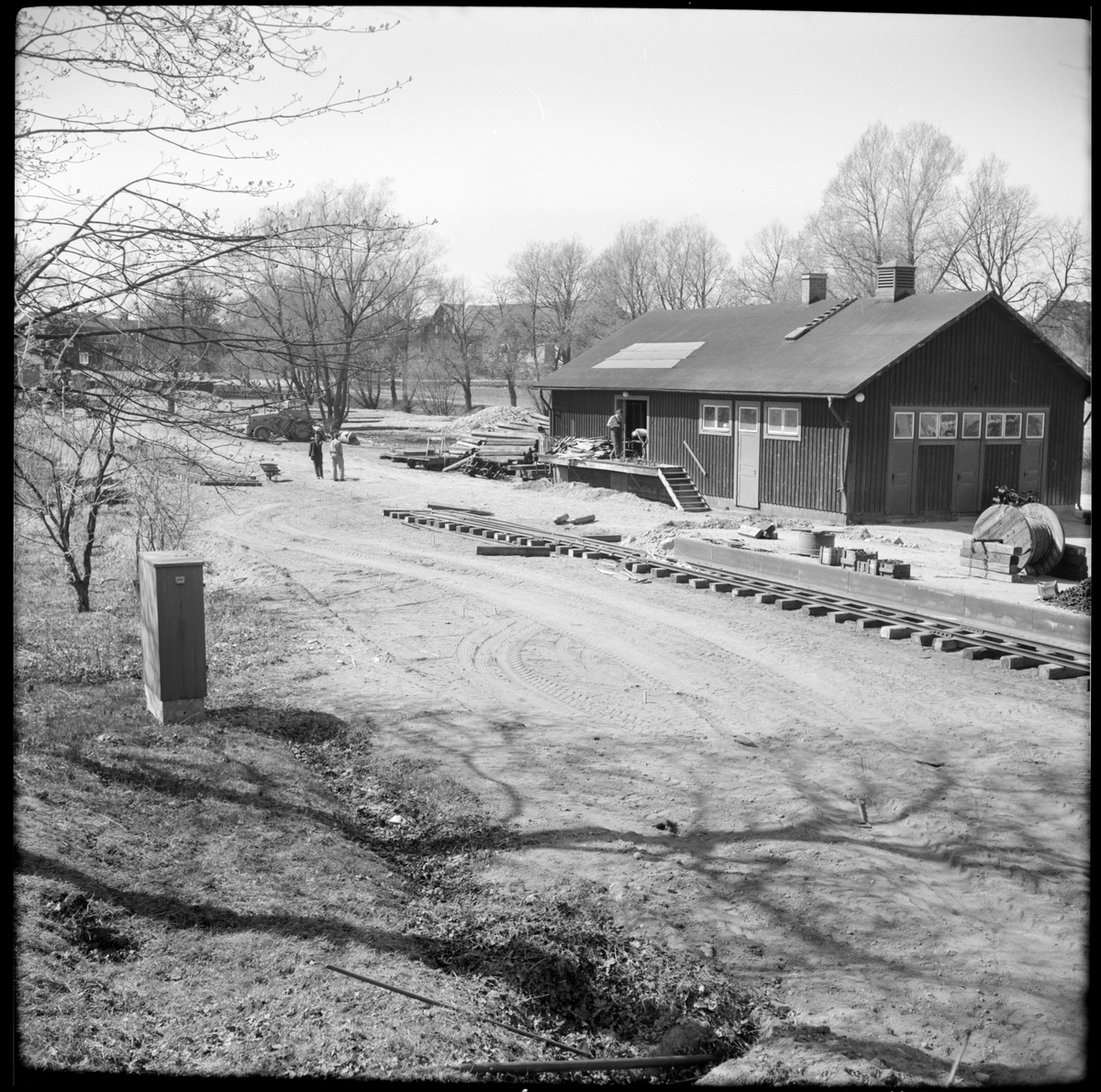Bangården i Mariefred där bangårdsarbete påbörjats inför Museijärnväg Östra Södermanlands Järnväg, ÖSlJ:s verksamhet.