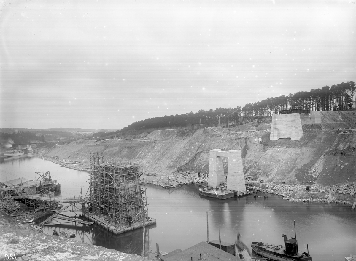 Titel: Södertälje Kanal. Södra kanalpelaren färdiggjuten.