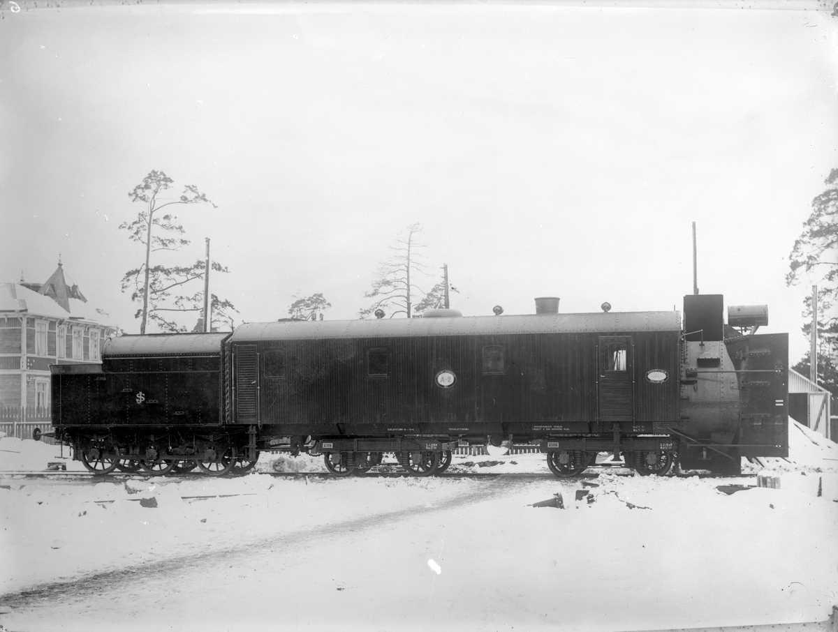 Statens Järnvägar, SJ snöslunga A2, sidovy. Bilden är tagen på Nydqvist & Holms område i samband med leveransen.