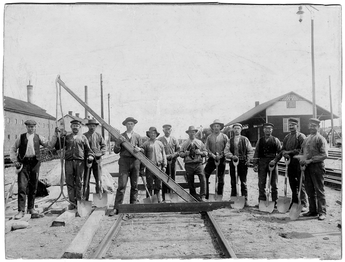 Banarbetarelag vid Enköpings Järnvägsstation. Stockholm - Västerås - Bergslagens Järnväg, SWB.