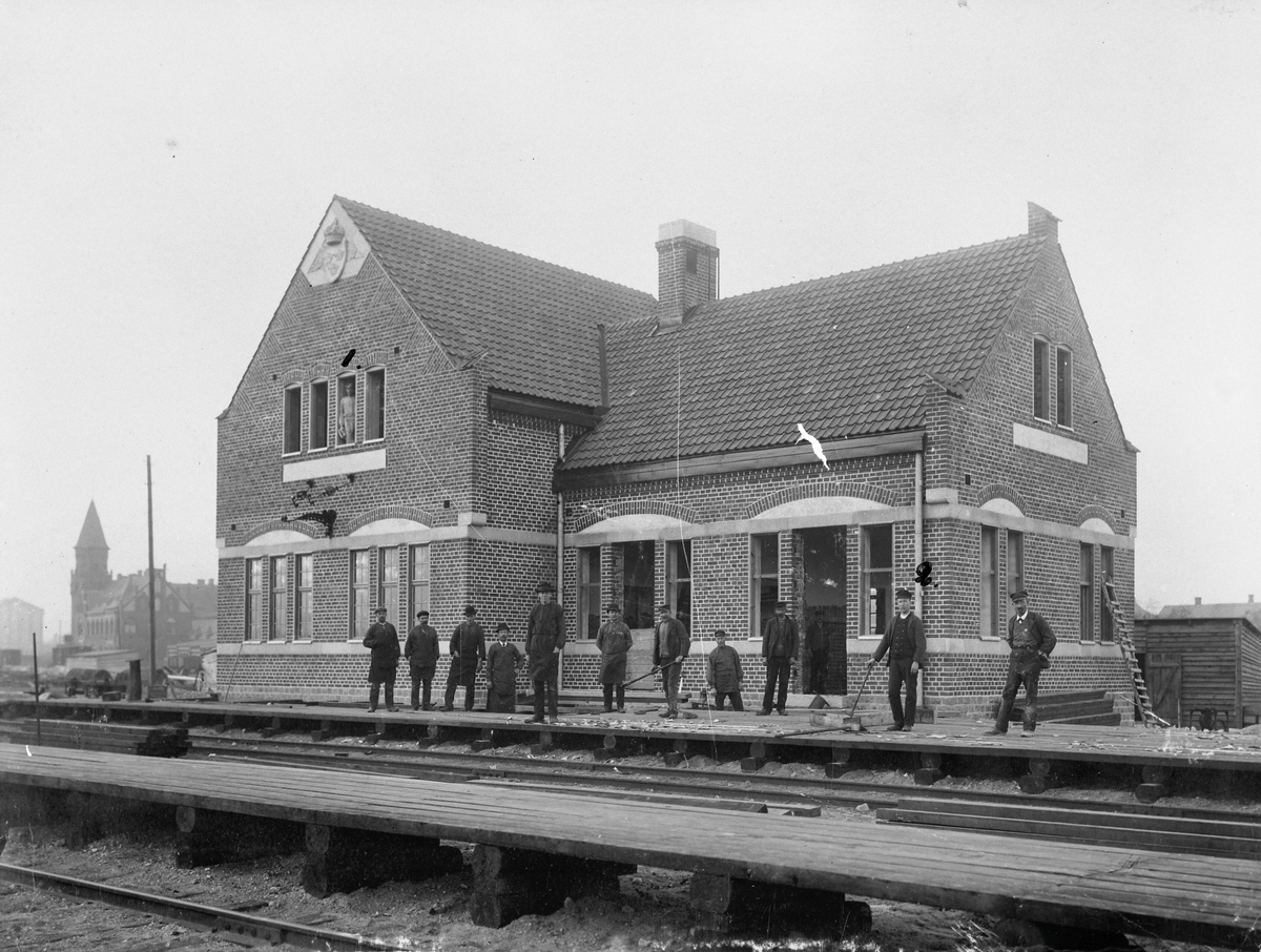 Titel: Färjestationen togs i bruk 1909. Trelleborgs ångfärjestn. under byggnad.