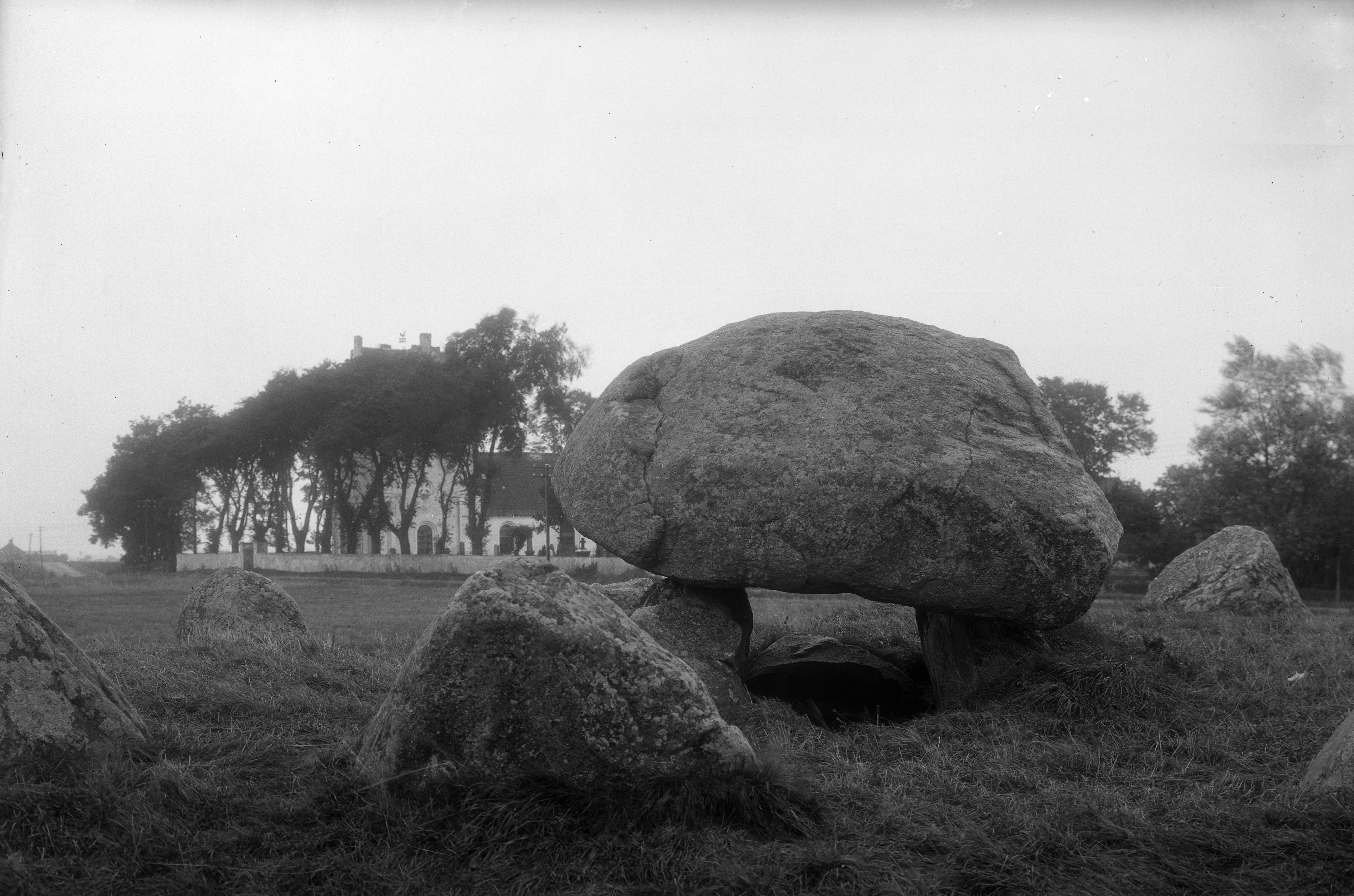 Runddös, RAÄ-nummer Skegrie 2:1. I bakgrunden Skegrie kyrka.