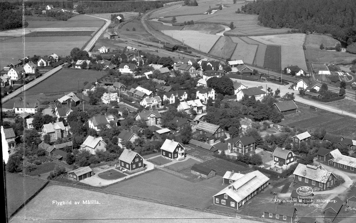 Flygfoto över Målilla station med omnejd.