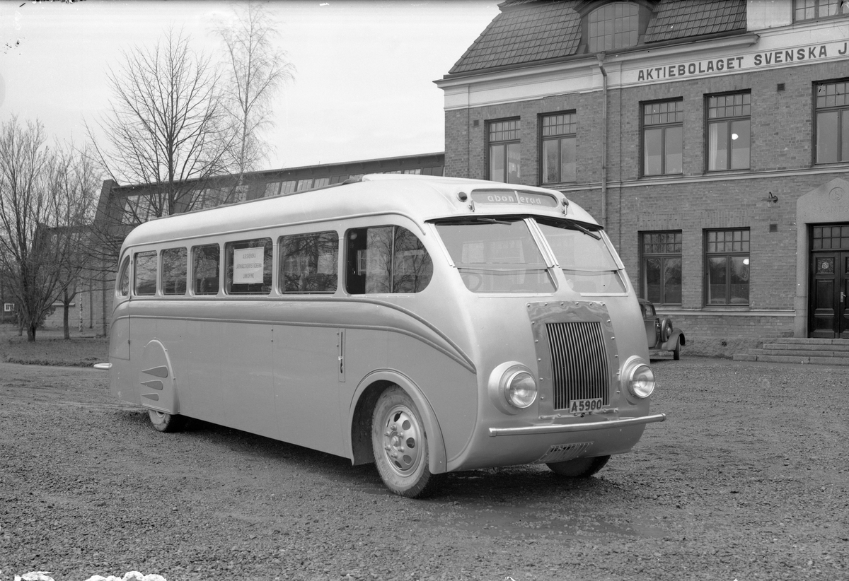 Reo-buss för Lindblads, Stockholm. Karossen tillverkad av Aktiebolaget Svenska Järnvägsverkstäderna, ASJ. Leveransfoto.