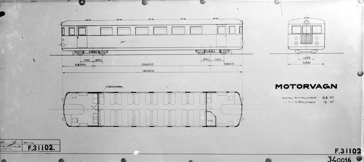 Titel: Ritning BJ motorvagn Ydo 52 och 53