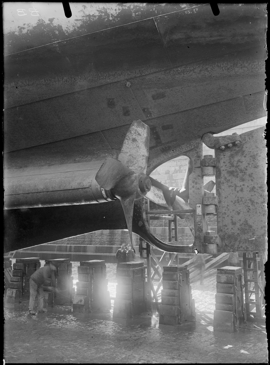 Titel: Färja i torrdocka, propeller.