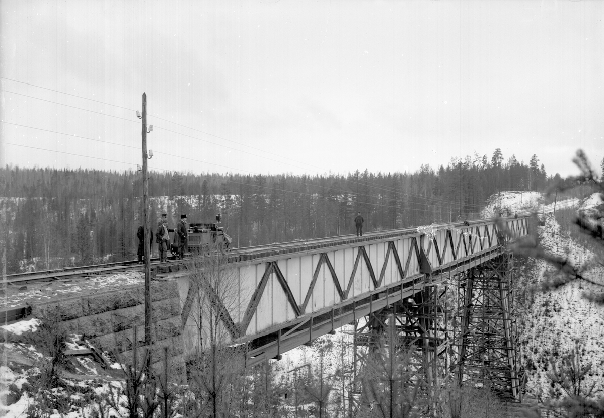 Titel: Järnvägsbro över Lögde älv mellan Mellansel och Vännäs.