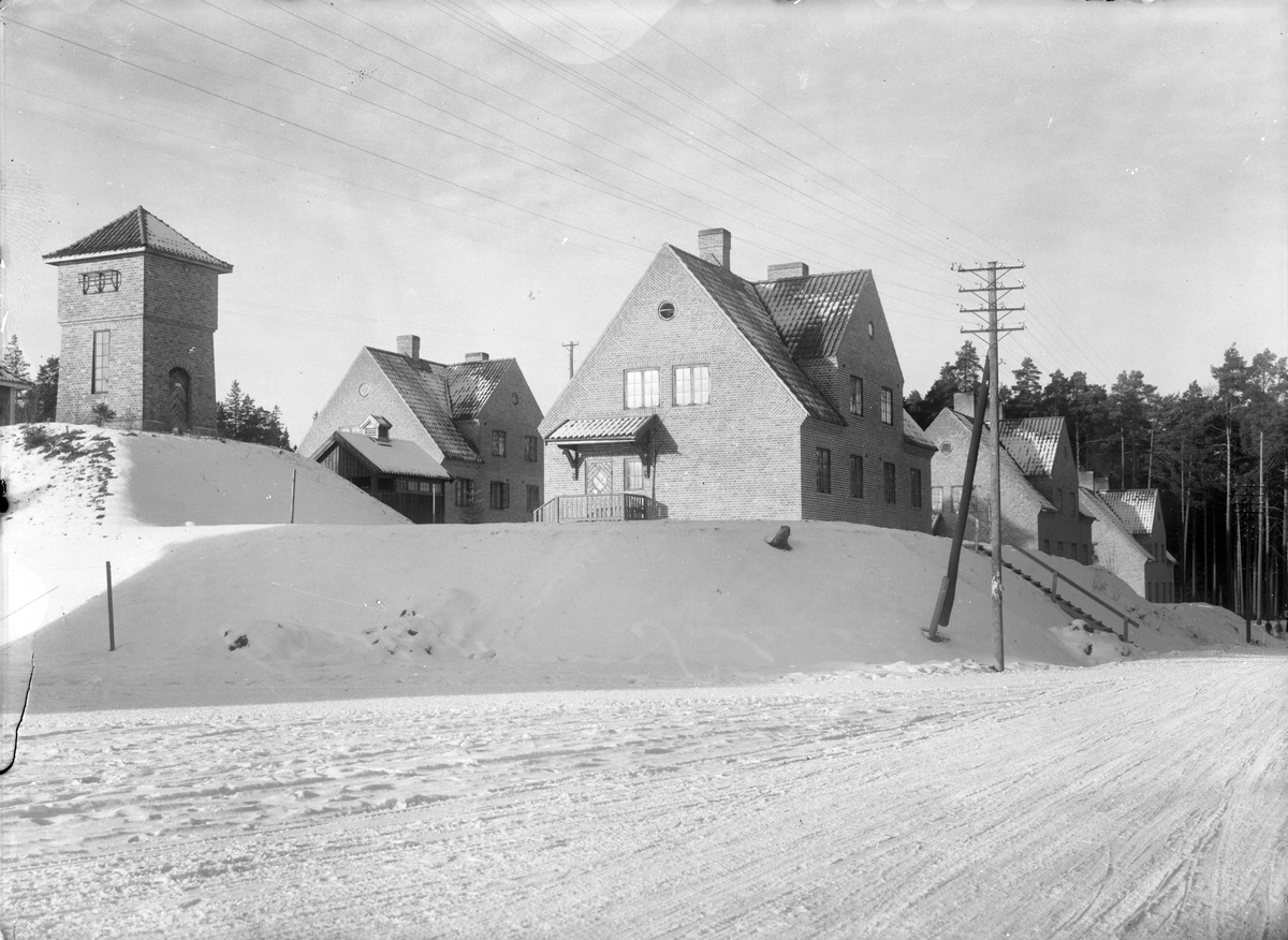 Boställshus, Södertälje Södra. Transformatorhus till vänster.