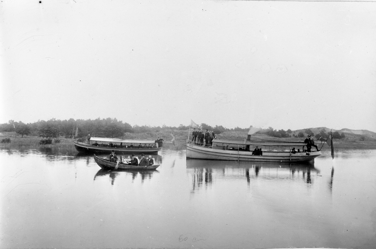 Titel: Ångsluparna "Sirius" och "Delfin". Pråmarna stakades fram.