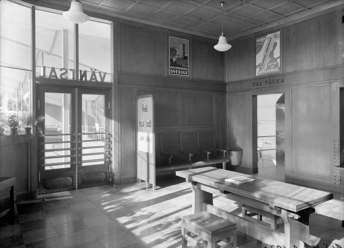 Titel: Från Stockholmsutställningen 1930. Väntsalsmiljö.