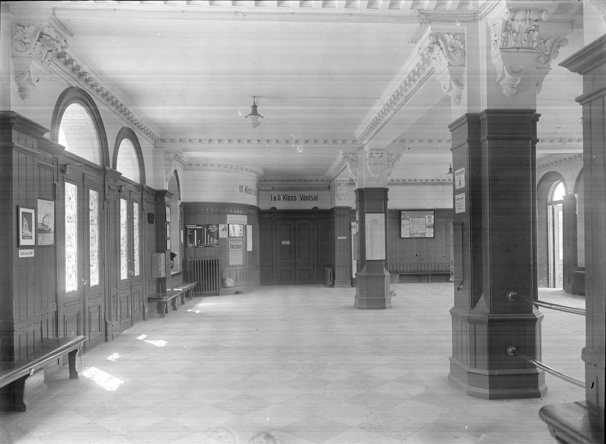 Titel: Stora väntsalen mot I & II klass väntsal i Borås stationshus