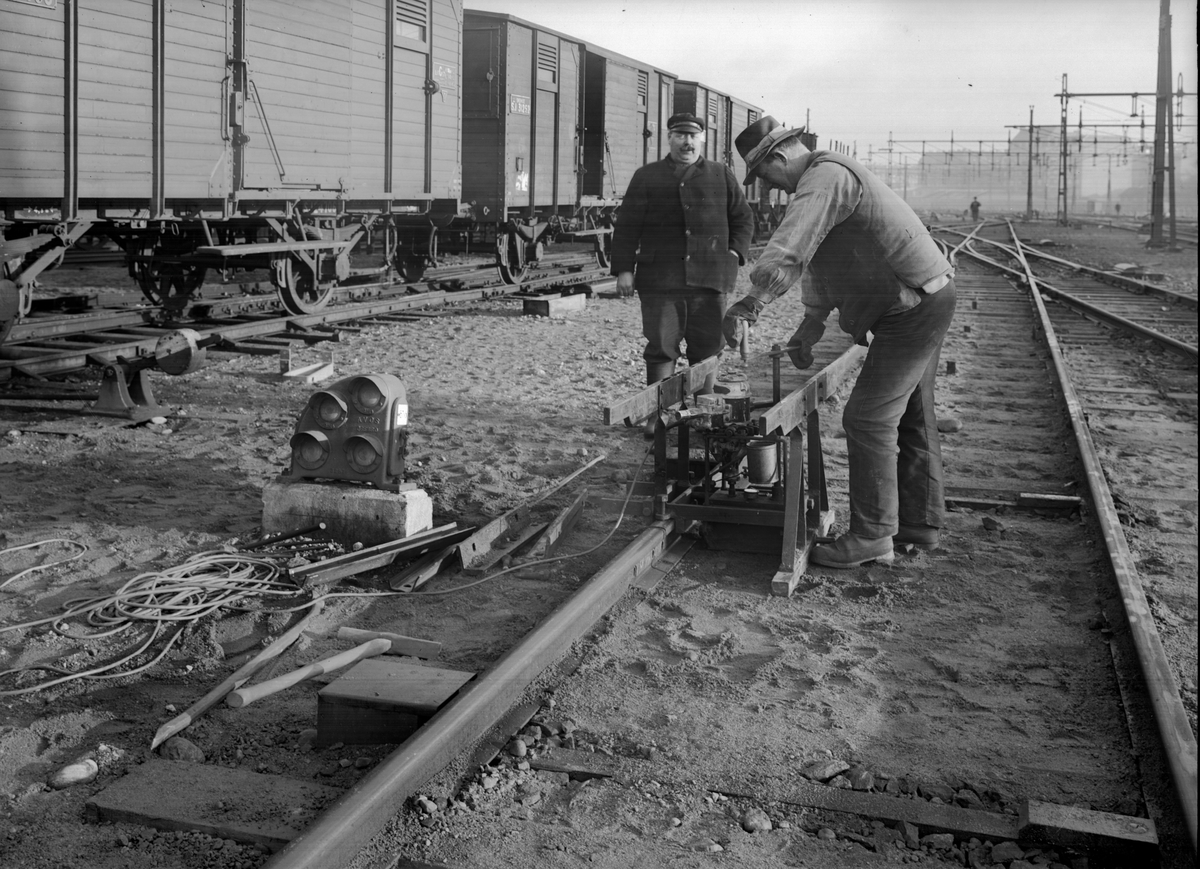 Bangård och borrmaskin för vertikal borrning, för isoleringsskarvar. Frisell till höger