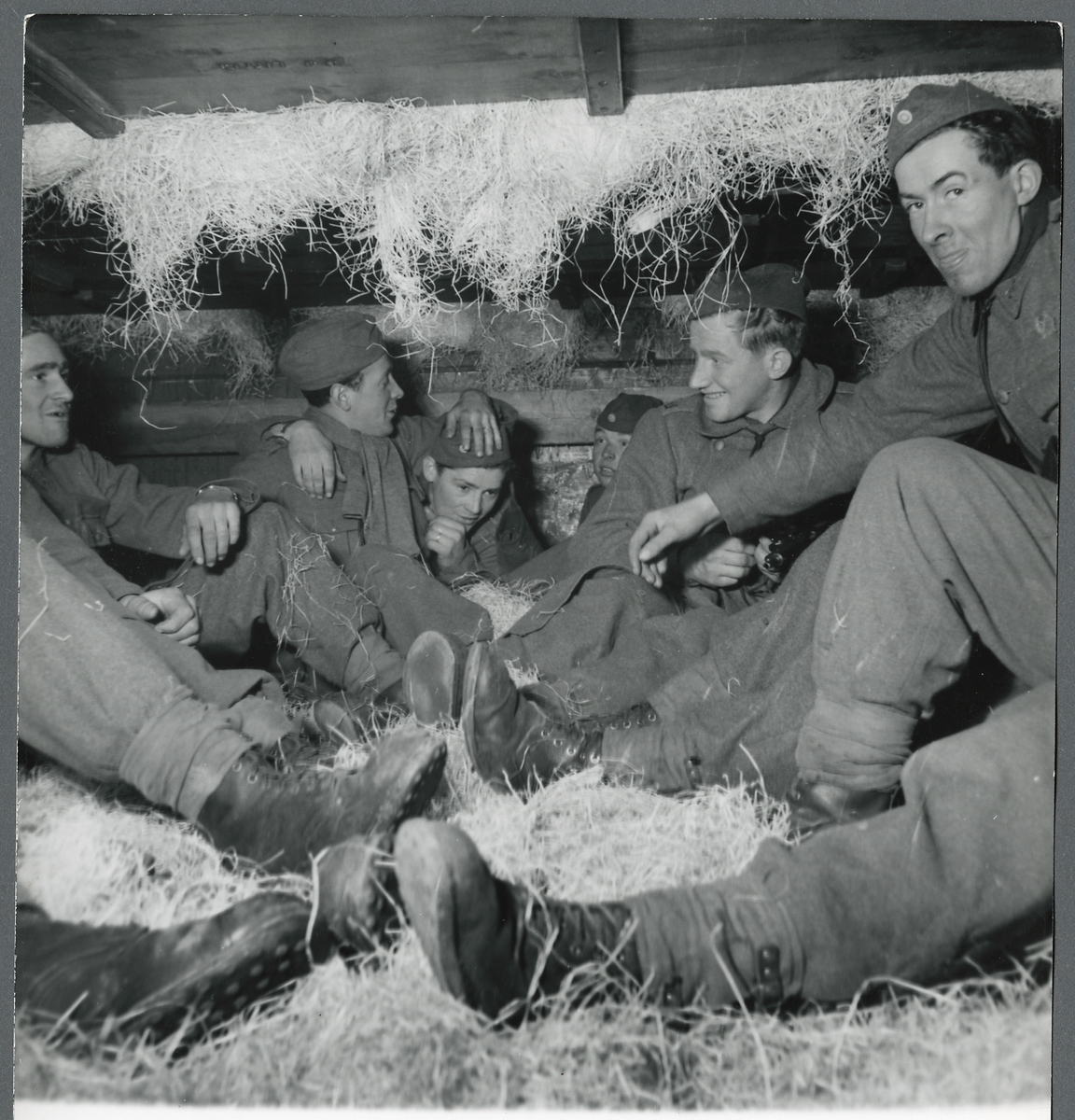 Titel: Militärtransport på linjen mellan Nässjö - Falköping. Ombyggd godsvagn för husering av soldater.