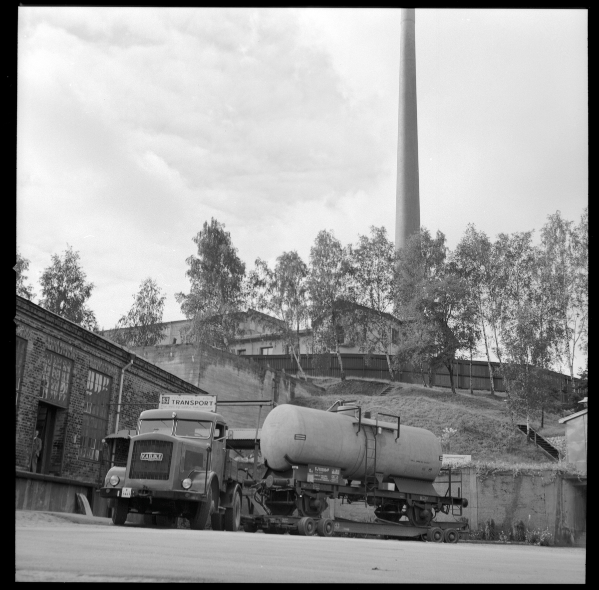 Titel: Kaelble lastbil med vagnbjörn lastad med tankvagn SJ Q12 506064.