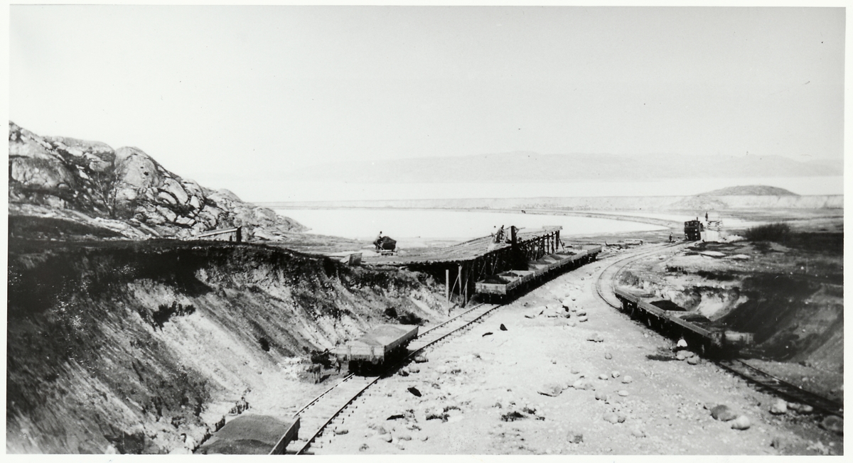 Grusgrop strax norr om Järkholmen. En provisorisk lastbrygga, och som grusvagnar användes Ni, Nn1 och J- vagnar.