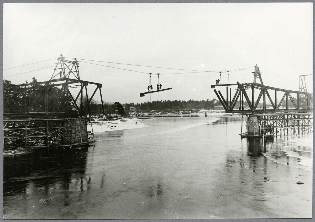 Titel: Banbyggnad av Ostkustbanan. Brobygge över Ljusnan.