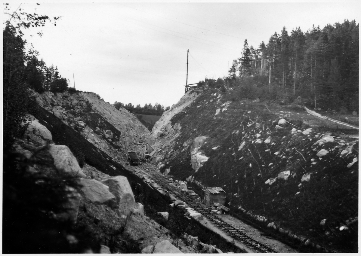 Banbygggnad Ostkustbanan, OKB. Skärning vid Hudiksberget, Galgberget..