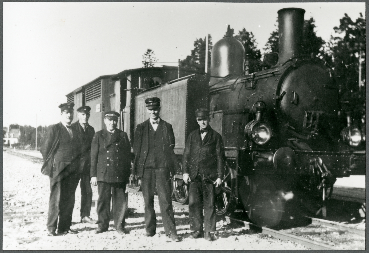 Titel: Ånglok UGJ E 7 "Kraftig" med personal vid Strömsberg.