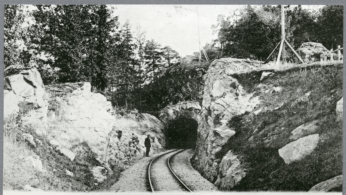 Titel: Brobackatunneln på linjen mellan Mjörnsjö och Anten längs Västergötland - Göteborgs Järnväg.