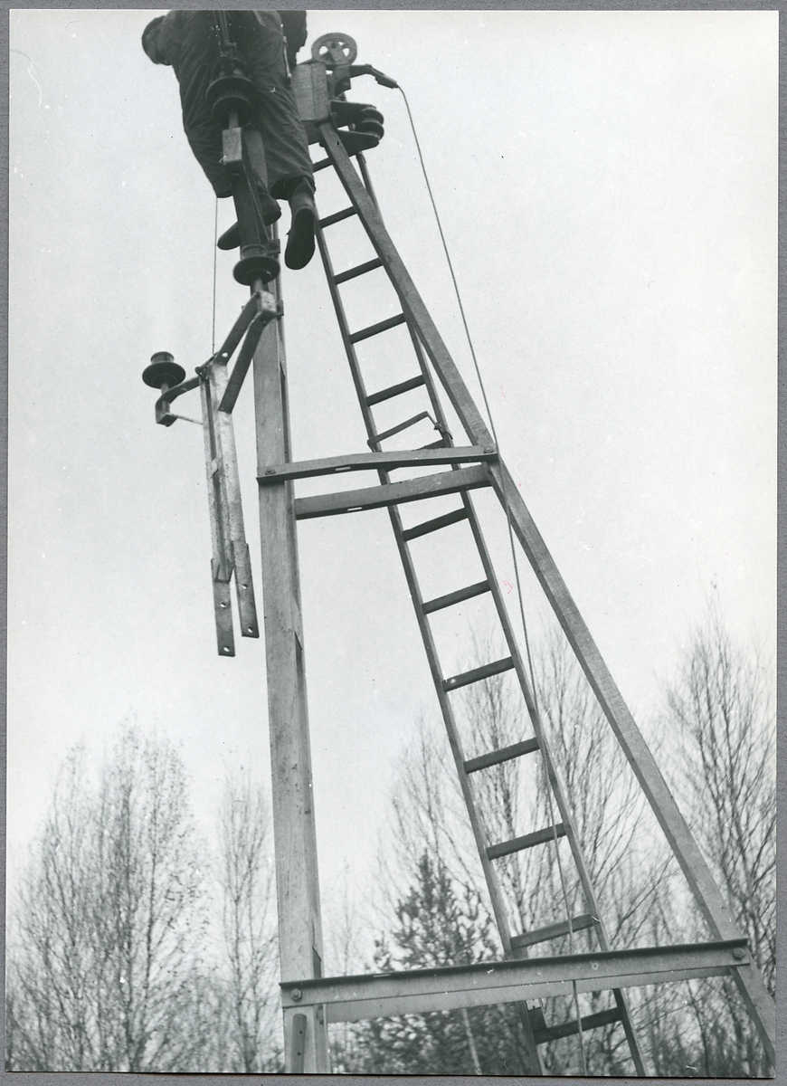 Titel: Luftledningsmontage någonstans på linjen Gävle - Söderhamn - Kilafors.