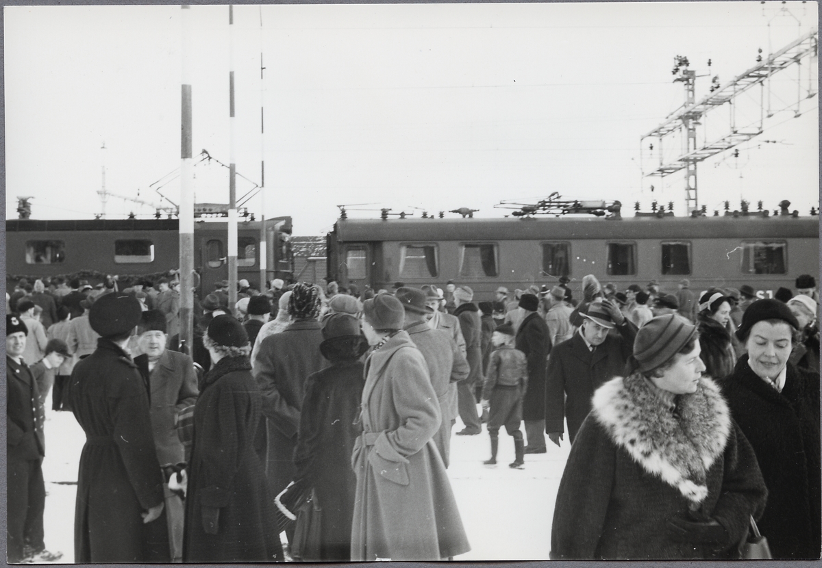 Titel: Första eltåget på en station på linjen mellan Söderhamn - Hudiksvall.