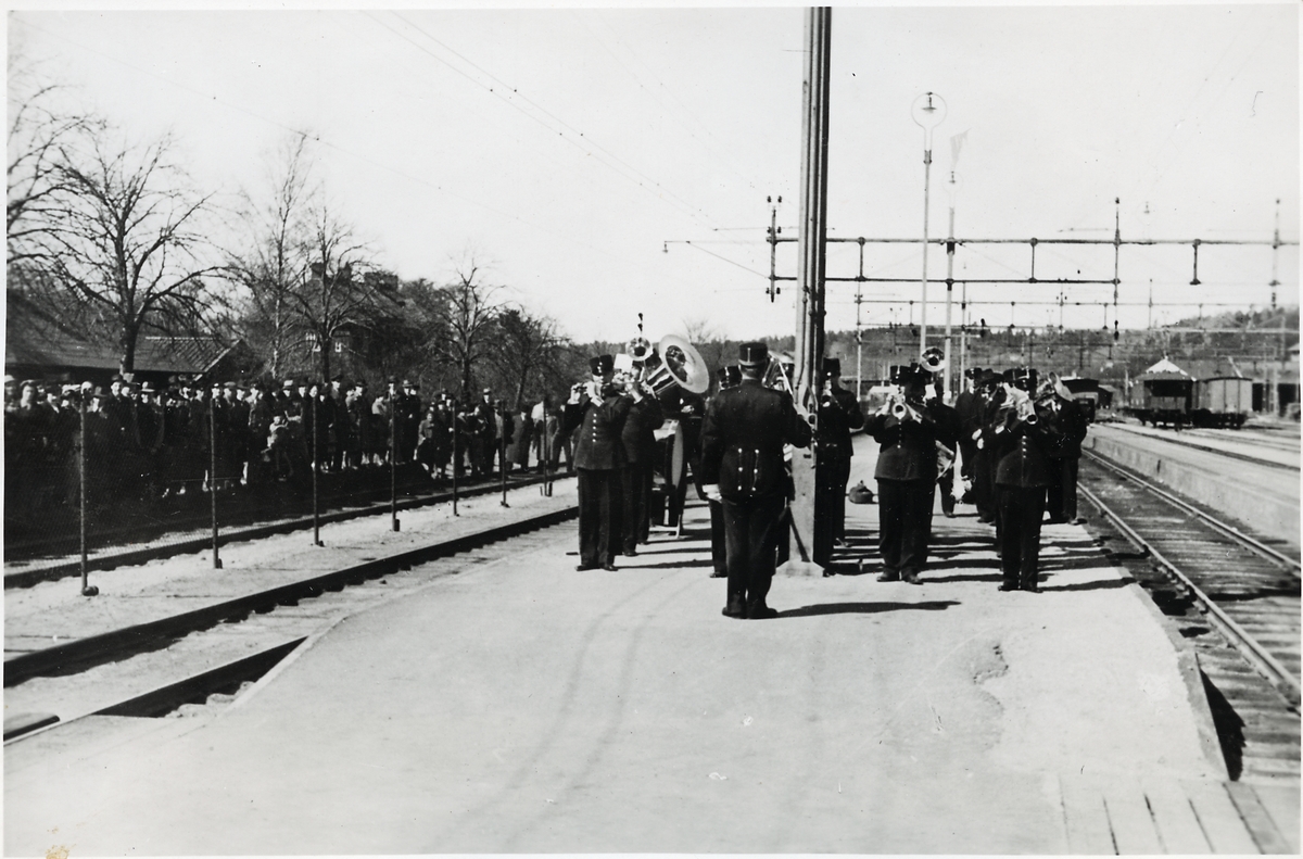 Titel: I väntan på första eltåget vid Uddevalla järnvägsstation.
