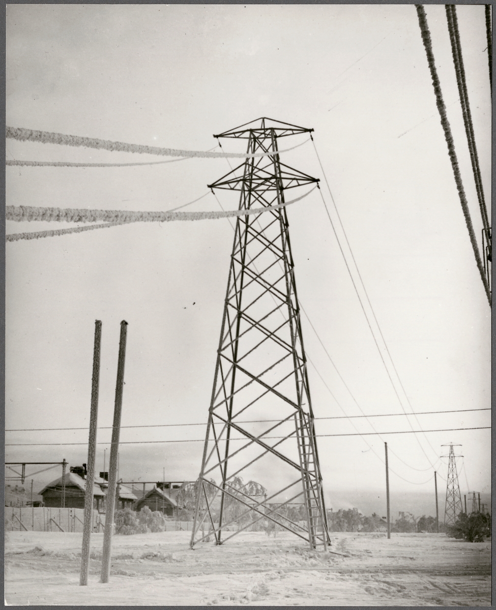 Titel: Rimfrostbildning på kraftledningen.