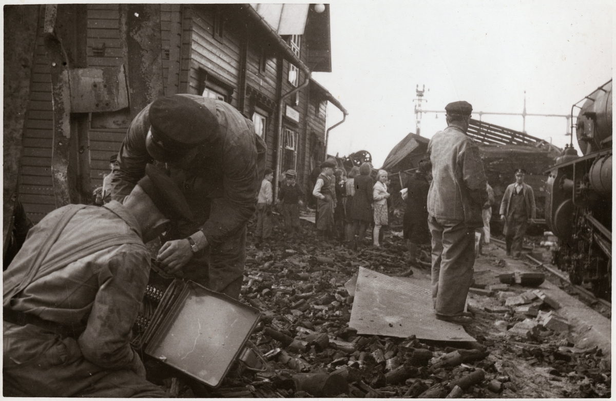 Titel: Personal i arbete efter urspårning vid station.