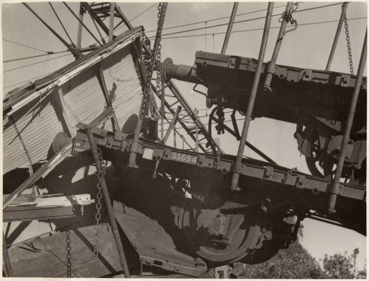 Rester av godsvagn Statens Järnvägar, SJ L 35094 efter urspårning.