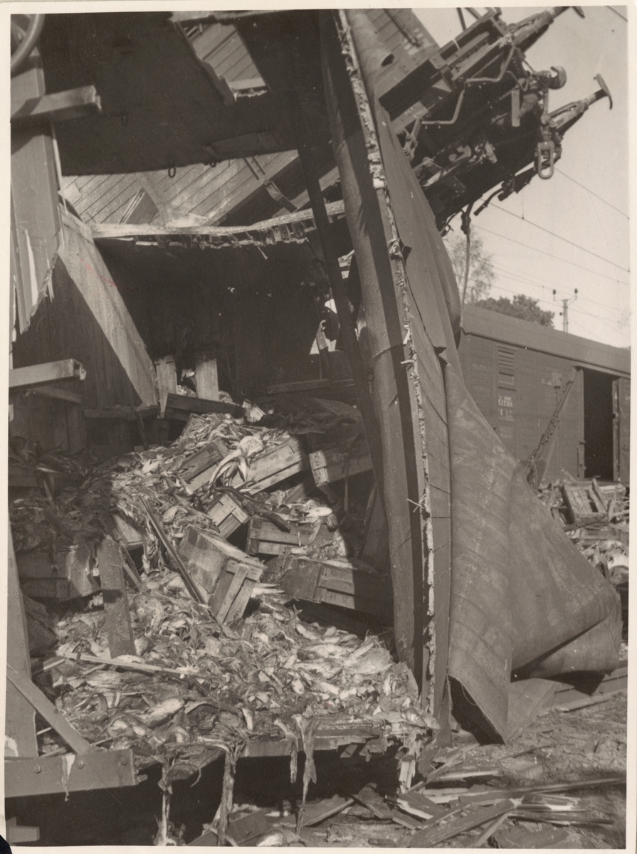 Titel: Godsvagn med fisk efter urspårning.