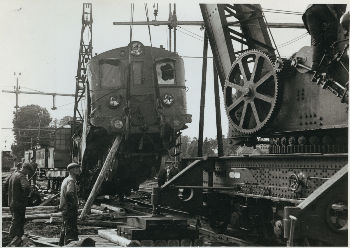 Statens Järnvägar, SJ D 539 lyfts efter olyckan i Pålsboda 1951.