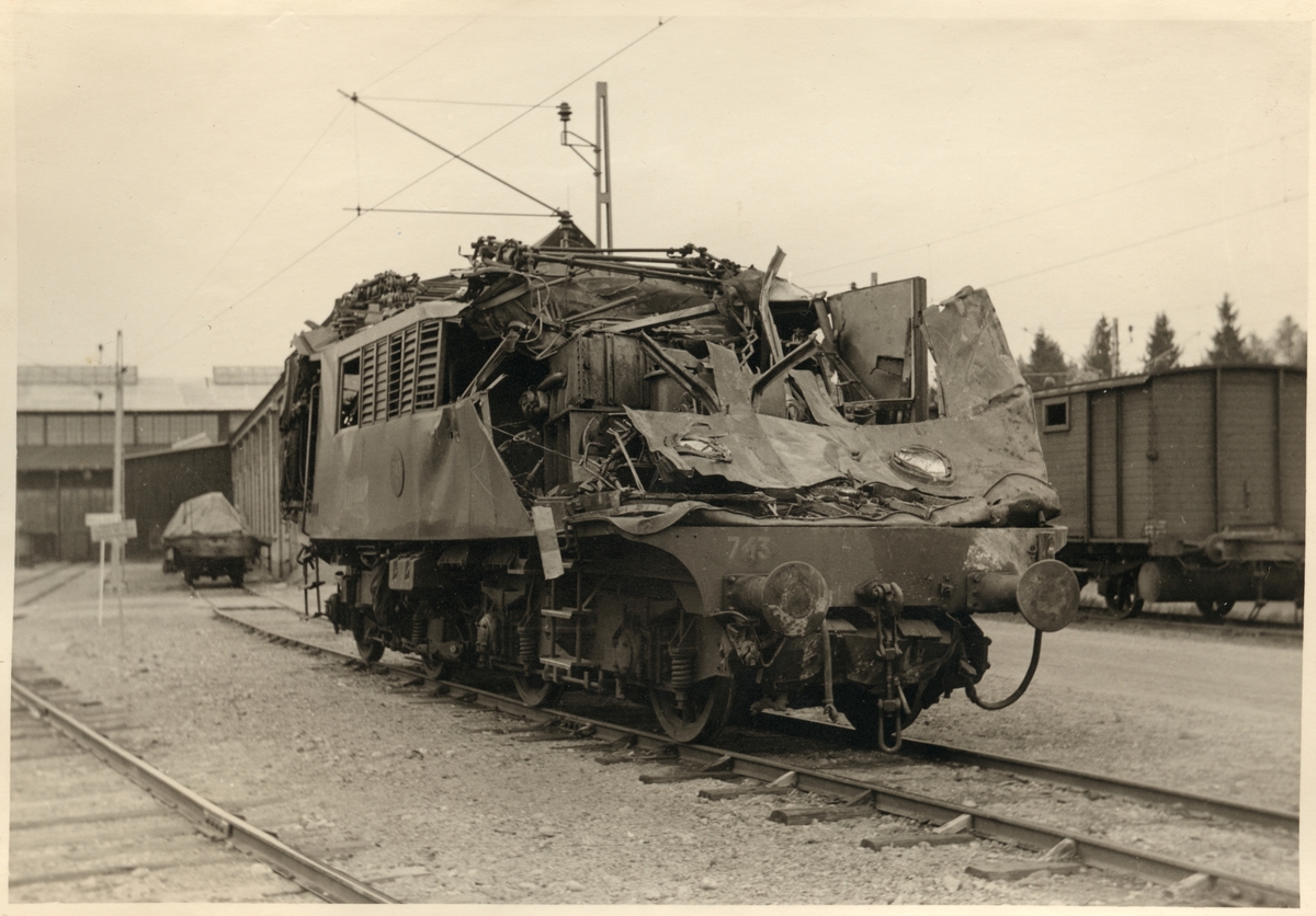Statens Järnvägar, SJ BK 743 skador efter kollision i Upphärad 1951.