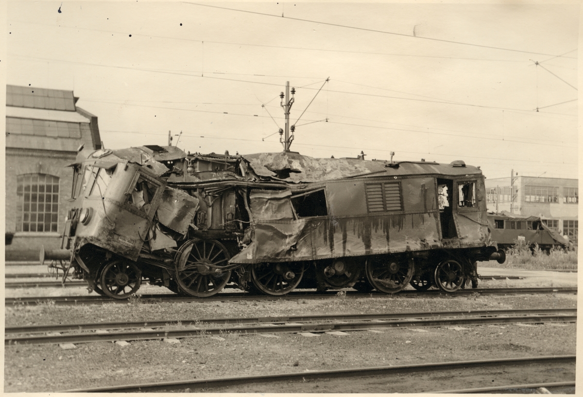 Statens Järnvägar, SJ Dk 539 skador efter kollision i Pålsboda 1951.