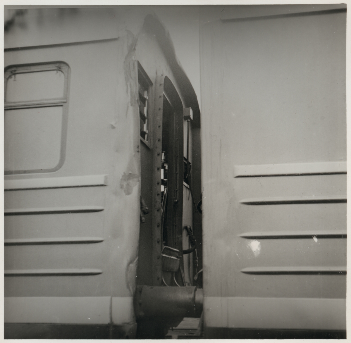 Titel: Skador på personvagn efter olycka vid hållplatsen Arket 1951.