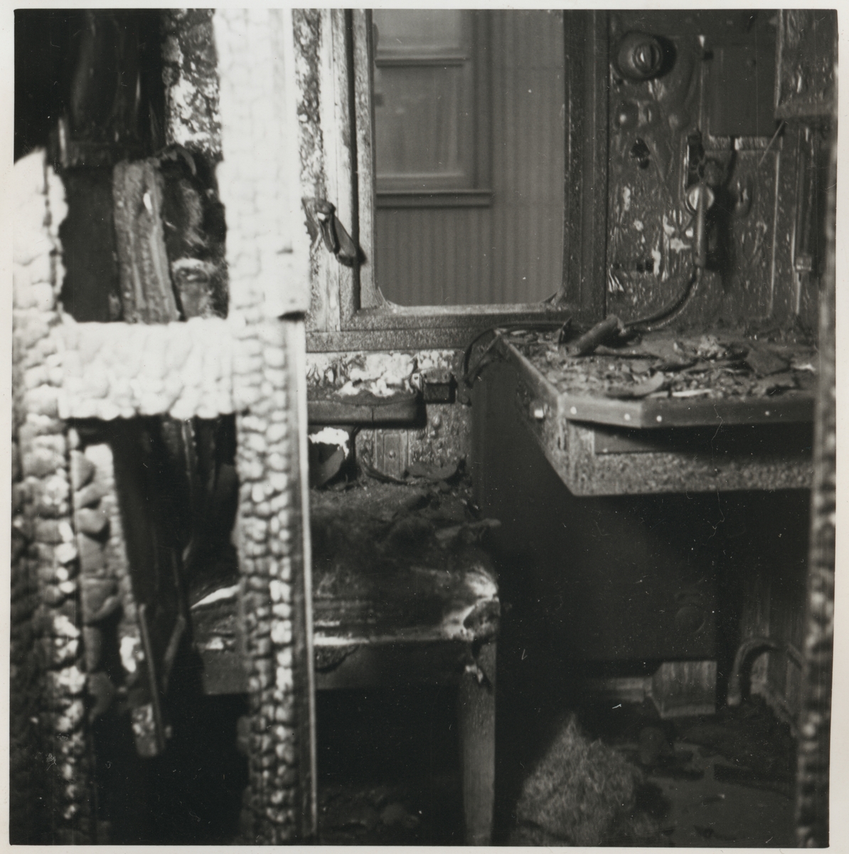Titel: Skador i T- vagnen efter brand i Storvik 1953.