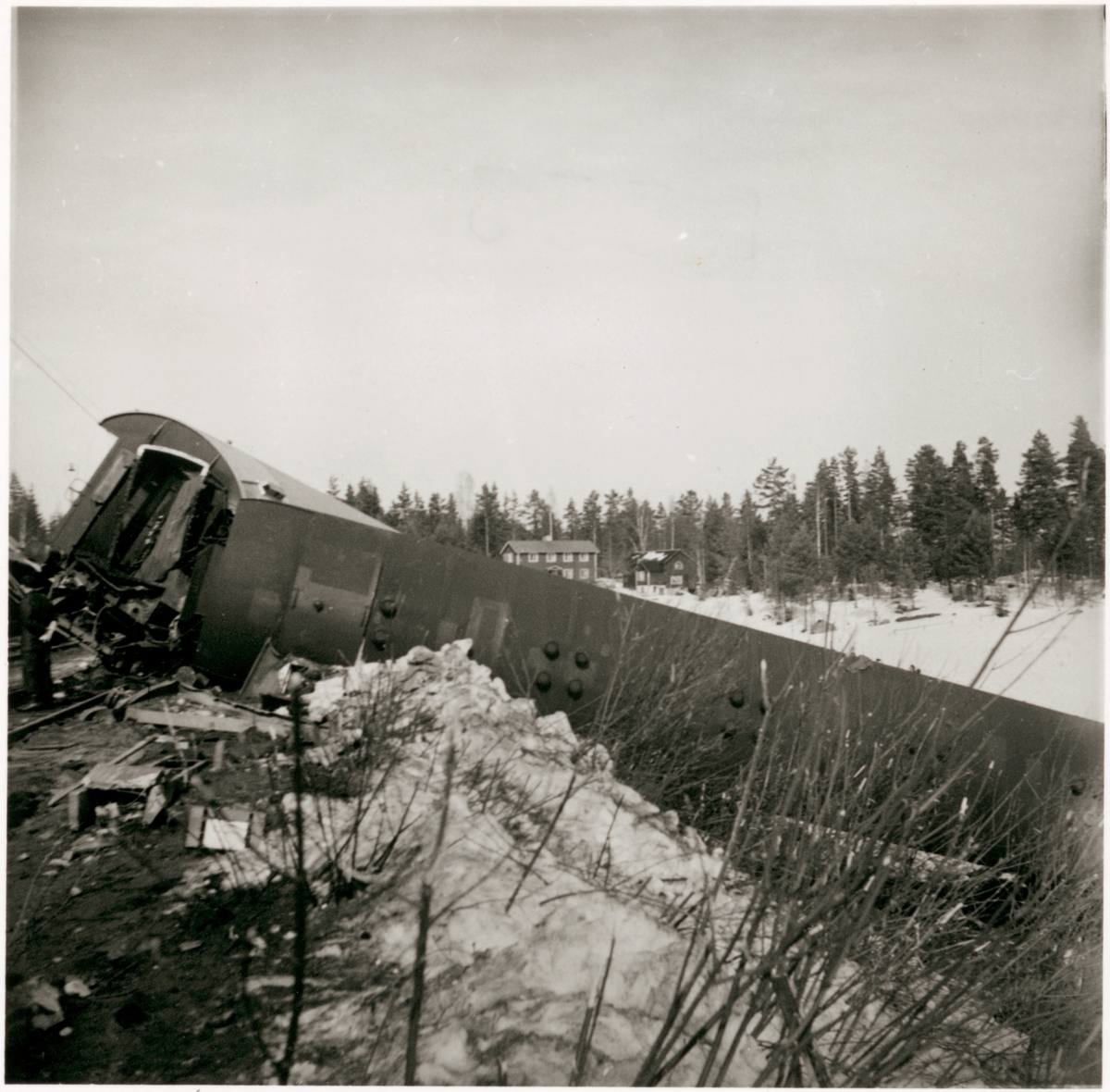 Titel: Urspårad vagn från olyckan i Granbo 1956.